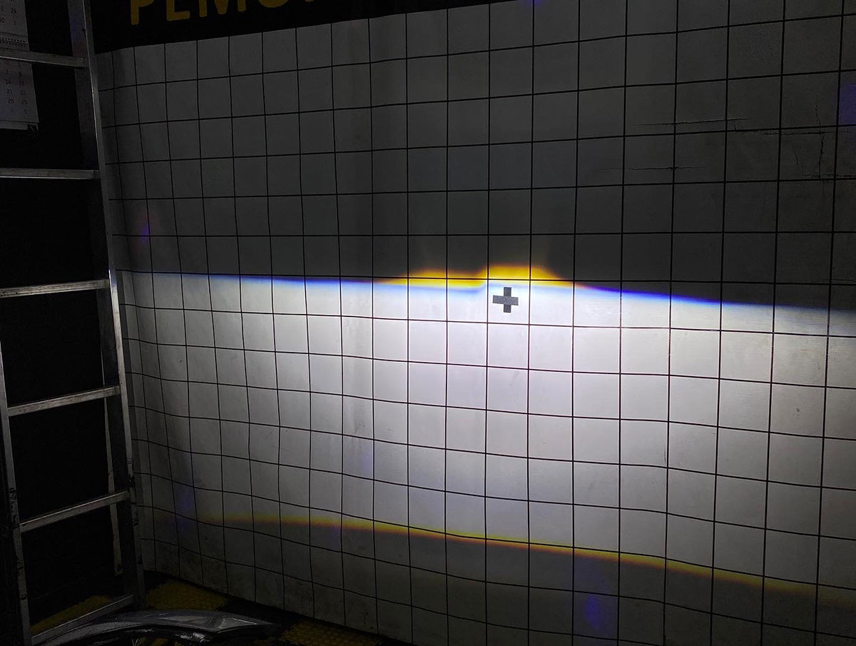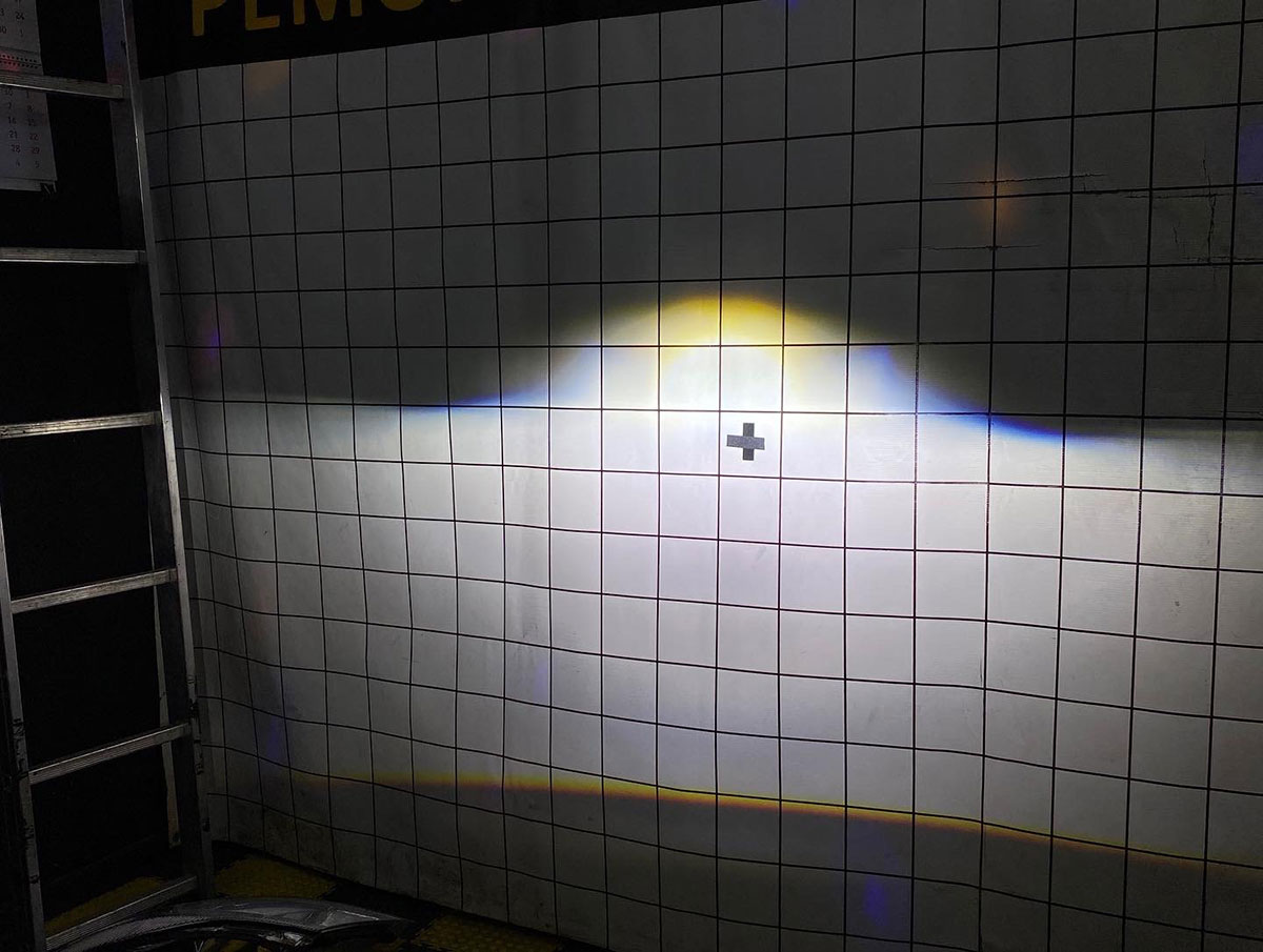 Обратите внимание, большинство моделей с двумя чипами и двумя отражателями имеют легкую аберрацию в центральной зоне светотеневой границы, которая заметна на близких объектах (стене, впереди стоящем автомобиля и пр.). Эта особенность является нормой для двухчиповых модулей и следствием работы второго чипа, отвечающего за усиление света в центральной рабочей зоне при работе в режиме ближнего света. При распределении света по дорожному полотну свет распределяется в пределах нормы и с усилением в центре.