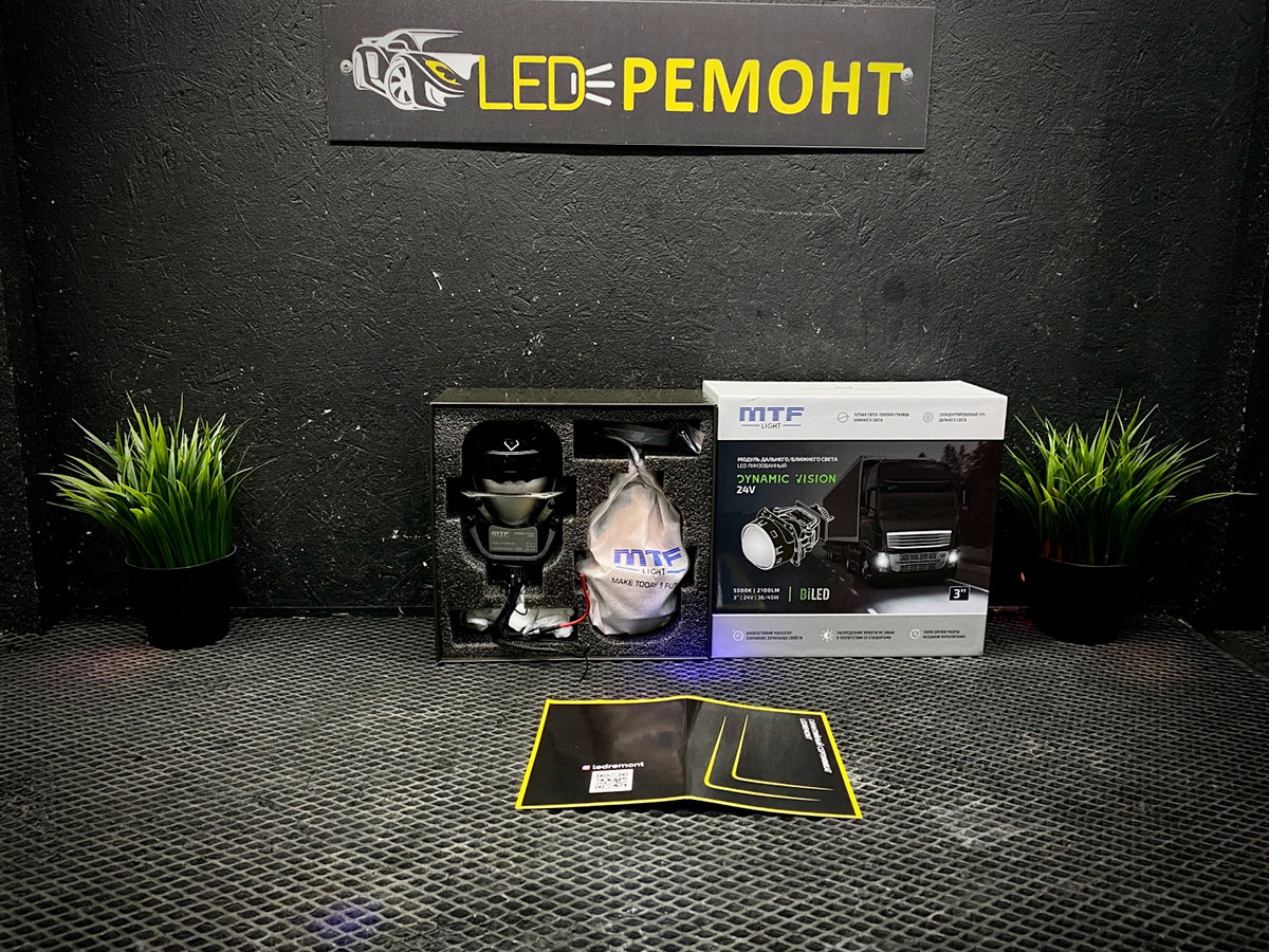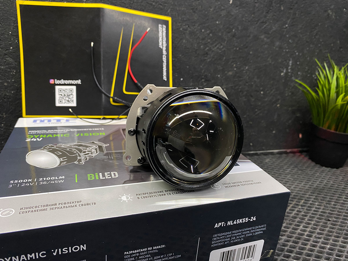 Светодиодные двухрежимные модули освещения проекторного типа (дальний/ближний) предназначены для доработки фар головного света транспортных средств с напряжением сети 24В.